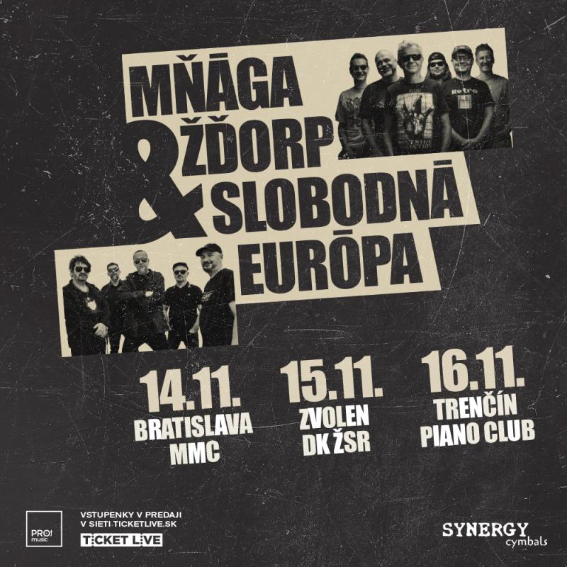 Dve legendy česko-slovenskej rockovej hudobnej scény Slobodná Európa a Mňága a Žďorp, sa v novembri 2025 zahrajú spoločné miniturné v troch mestách na Slovensku.