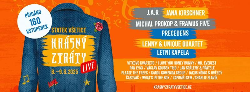 Letos v létě se statek ve Všeticích opět promění v magické místo, kde se setkávají lidé, kteří mají rádi hudbu, smích, příběhy a tu neopakovatelnou atmosféru sdíleného zážitku. Festival Krásný ztráty Live 2025 přichází opět s muzikou více generací a Michal Prokop zde oslaví 79. narozeniny. Právě jeho jméno je s festivalem nerozlučně spjato – Krásný ztráty Live totiž vznikly jako oslava a pozvánka pro hudební přátele na 3 festivalová pódia a pro milovníky živé hudby na jedno z nejkrásnějších míst, kde se festivaly konají.