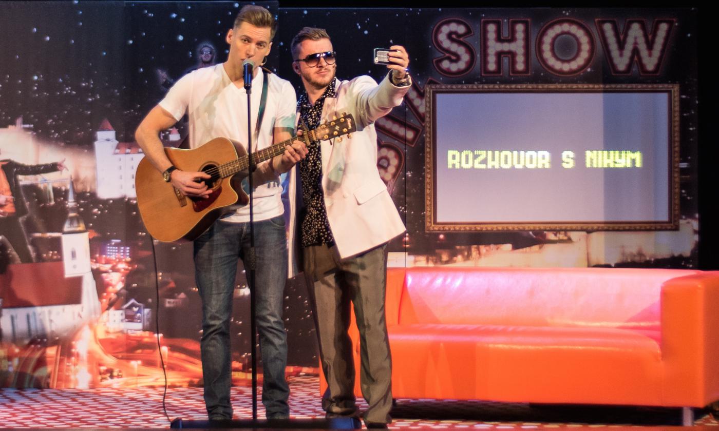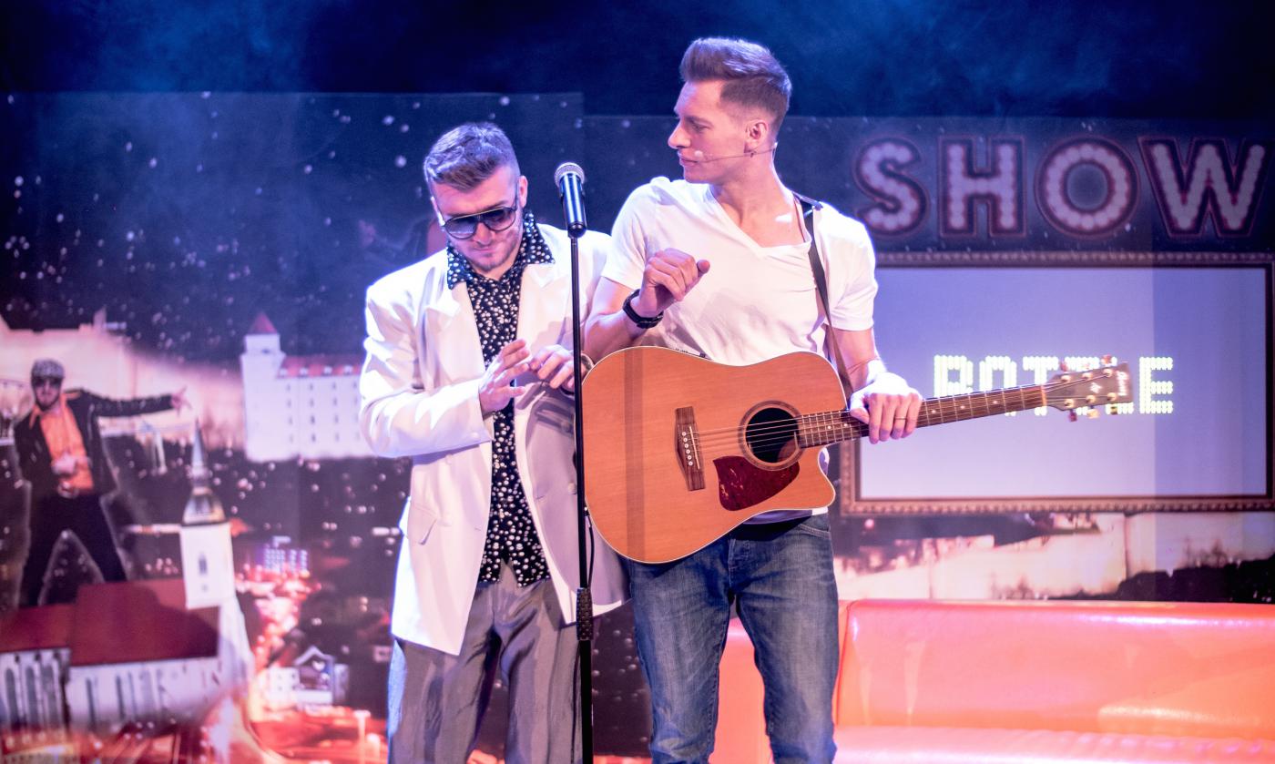 Akčný Thomas hrá v predstavení speváka prichádzajúceho hľadať slávu na Slovensko a Martin Madej producenta a speváka "za vodou". V paródii na slovenský šoubiznis obaja speváci spomínajú množstvo celebrít, no uťahujú si aj sami zo seba.