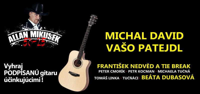 Oslava dvoch jubileí jedného z najvýraznejších slovenských country spevákov sa uskutoční na sklonku januára. Na koncerte nesúcom názov Galakoncert Allan Mikušek 50-25 + hostia sa v bratislavskej HANT aréne na jednom pódiu stretnú zaujímavé tváre slovenskej i českej hudobnej scény. Návštevníci tejto hudobnej udalosti sa môžu tešiť na silný zážitok a obrovskú škálu hudobných žánrov. Jeden z návštevníkov si domov odnesie i hodnotný darček, ktorý mu priamo na pódiu odovzdá oslávenec Allan Mikušek spolu s Michalom Davidom a Vašom Patejdlom.