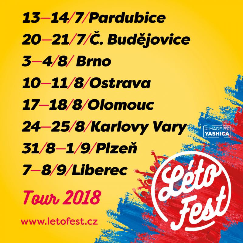 Koncertní vystoupení Kabátů, Chinaski, “Wanastowek”, Marka Ztraceného, No Name a mnoha dalších, bohatý doprovodný program, skvělé jídlo nebo ty nejlepší lokální kapely, to vše přiveze Létofest do osmi měst v České republice. Oproti loňskému startovacímu ročníku nabídne tento rok plné dva dny nabité tou nejlepší českou a slovenskou hudbou. To vše si navíc návštěvníci užijí se vším komfortem jednotlivých měst.