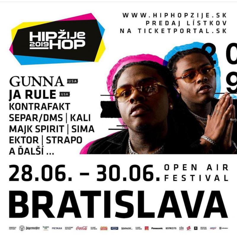 Tohtoročnú letnú sezónu už čoskoro otvorí unikátny festival „Hip Hop Žije“. Tento rok je historicky najväčší, vystúpi na ňom až 150 účinkujúcich na 4 stageoch a na svoje si prídu fanúšikovia old school aj new school rapu. Pre tých druhých majú organizátori naozaj fantastické prekvapenie. Tento rok sa im podarilo dotiahnuť do Bratislavy skutočne veľké mená svetového rapu. K JA RULE-ovi teraz pribudol predstaviteľ novej hip-hopovej generácie GUNNA. Aj napriek mladému veku už stihol pôsobivú kariéru. Na konte má niekoľko hitov s miliónmi vzhliadnutí na YouTube, spolupracoval s menami ako Lil Yachty, Offset, či Playboi Carti a aktuálne koncertuje po svete so svojou vymakanou šou. Nenechajte si ujsť „Hip Hop Žije“. Festival sa uskutoční na Zlatých pieskoch od 28-ho do 30-ho júna.