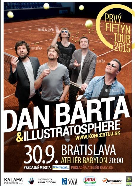 Špičkový český hudobník Dan Bárta a kapela Illustratosphere oslávia so Slovákmi 15 rokov na scéne na turné „PRVÝ FIFTÝN 2015“. Fanúšikov čaká od septembra narodeninová oslava a pokračovanie hudobného maratónu v 9-tich mestách Slovenska. Unikátne spojenie charizmatického českého speváka, držiteľa množstva hudobných ocenení, Dana Bártu a kapely Illustratosphere je zárukou nezabudnuteľného hudobného zážitku. Nenechajte si ujsť najväčšie muzikantské klenoty spolupráce Dan Bárta & Illustratosphere!