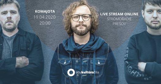 Prešovská kapela Komajota mala v týchto dňoch tráviť čas so svojimi fanúšikmi na klubovom turné k 15 rokom vzniku kapely. Namiesto toho bude vysielať online koncert zo skladu hudby v prešovskom Stromoradí. Koncert sa uskutoční v rámci iniciatívy Aby kultúra žila, ktorá pomáha umelcom v núdzi výzvou na dobrovoľné príspevky. Výťažok sa rozdeľuje medzi umelcov, ktorí potrebujú priamu finančnú pomoc v čase karantény, záujemcovia o takúto podporu sa môžu registrovať na https://abykulturazila.sk/preziadatelov. Komajota zahrá koncert v profesionálnom prostredí klubu, ktorý bude moderovaný, v nadväznosti na koncert Kataríny Málikovej. Ten sa pod rovnakou hlavičkou uskutočnil minulý víkend v bratislavskej Cvernovke. Koncert Komajoty začína v nedeľu 19.4. o 20:00 - sledujte ich Facebook stránku.