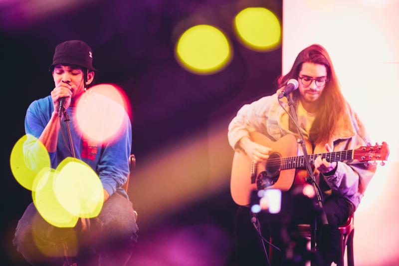 Ben Cristovao s kytaristou Karolem Komendou zahráli v Centru sociální služeb Tloskov, dali i Růži z Texasu