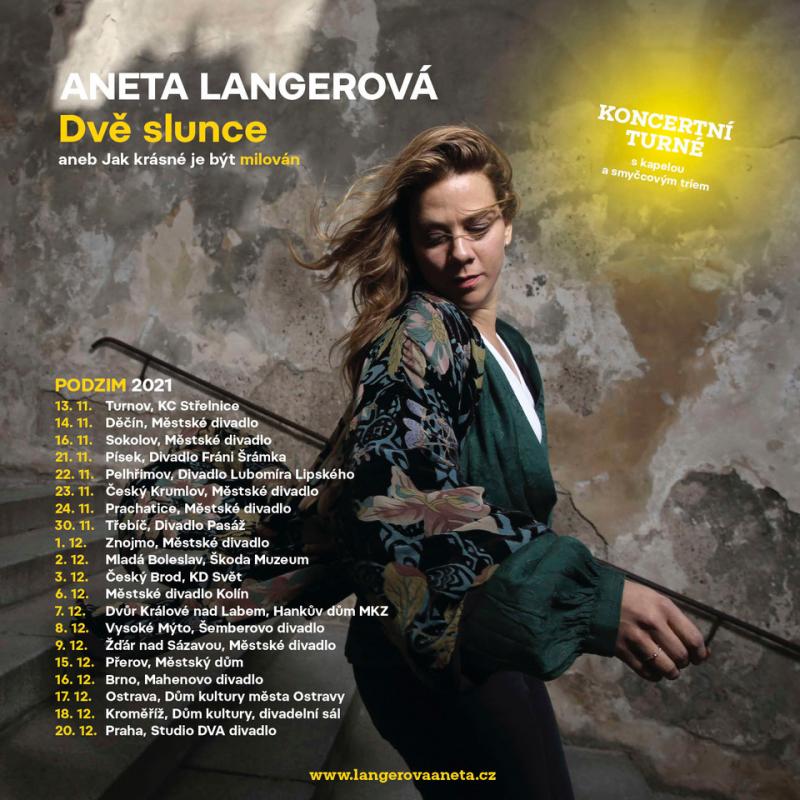 V novembri 2021 Aneta s kapelou a sláčikovým triom vyráža na jesenné turné Dvě slunce aneb Jak krásné je být milován, ktoré štartuje 13. 11. 2021, a na cestu si so sebou pribalia i nové vinyly. Na 20tich koncertoch turné zaznejú príbehy z albumu Dvě slunce, ktoré si všetci spolu môžu zaspievať NAŽIVO, a nabiť sa pritom slnečnou energiou na celú zimu. Na koncertoch bude Anetu sprevádzať jej kapela spoločne so sláčikovým triom v zložení: klavirista a producent albumu Jakub Zitko, bubeník Martin Kopřiva, basgitarista Miloš Klápště, gitarista Ludvík Kulich, violoncellistka a speváčka Dorota Barová, huslistka Veronika Vališová a violista Vladan Malinjak.