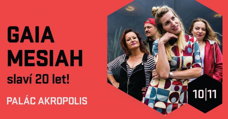 Legendární Gaia Mesiah je v nejlepších letech a plná energie! Svoje dvacetiny oslaví tahle nadupaná čtveřice již ve středu 10. listopadu koncertem v žižkovském Paláci Akropolis. „Těšíme se moc, že dvacáté narozeniny oslavíme v domovské Praze, kde jsme se v roce 2001 dali dohromady,” říká kytaristka Santa Morella, a dodává s úsměvem: „Vydáme ze sebe všechno a věřím, že potěšíme jak ty, kteří naše začátky pamatují, tak ty mladší, kteří se třeba v té době zrovna narodili.” Kapela se prosadila především díky živelné až explozivní koncertní energii, excelentním pohybovým i hlasovým kreacím zpěvačky Marky Rybin i barvitostí repertoáru, takže až do roku 2008 patřila ke stálicím tuzemské klubové scény. Po více než osmileté pauze se kapela v roce 2016 vrátila na festivalová i klubová pódia, vyzrálá, s nadhledem a radostí. Svou hudbu charakterizují jako “cross - country military“, či “zběsilý crossover“. Mezi hardcoreovými riffy probleskuje latina, country, punkrock, blues, funky, nu-metal, ale i reggae. Hlavním tématem jejich tvorby zůstává vnitřní svoboda a odvaha přijmout zodpovědnost za své činy. Na svém kontě má Gaia Mesiah čtyři studiová alba a na jaro 2022 chystá nový singl. Letos také vychází vinylová verze legendárního alba Ocean.