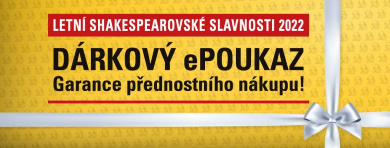 Od 1. prosince budou v síti Ticketmaster v prodeji Dárkové ePoukazy na Letní shakespearovské slavnosti 2022. Krásný vánoční dárek v podobě ePoukazu umožní příznivcům Slavností obdarovat své blízké, a kromě bohaté nabídky představení garantuje i možnost přednostního nákupu vstupenek.