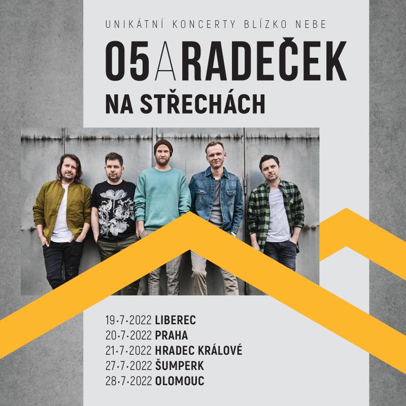 Skupina O5 a Radeček oznámila termíny turné na příští rok. Parta okolo bratrů Polákových, jenž letos bodovala s projektem BRA3, odehraje oblíbené Turné na střechách v průběhu července. Koncerty blízko nebe odstartují 19. 7. v Liberci a skončí v Olomouci 28. 7. 2022. Vstupenky na turné jsou už nyní v prodeji v síti TicketLive.cz.