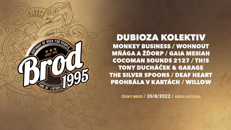 Energickým zahraničním headlinerem bude bosenská parta Dubioza Kolektiv, která si svou balkánskou smršťí ska, punku, reggae, dubu, elektroniky a hip-hopu získala fanoušky napříč Evropou i za Atlantikem a má za sebou úspěšné sety na těch největších festivalech, včetně Glastonbury, Szigetu, Roskilde nebo Lollapaloozy. Brodský festival bude jedinou letní hudební zastavkou této divoké partičky. Monkey Business představují jistotu skvělého funku v podání špičkových muzikantů v čele s Romanem Holým a charismatickými zpěváky Matějem Ruppertem a Terezou Černochovou, ale i Wohnout bratří Homolů jistě pojede na plný plyn. Písničky Mňágy a Žďorp jsou přehlídkou hitů, jejichž upřímná sdělnost spolehlivě funguje už na několikátou generaci fanoušků a nekompromisní nálož v plné formě slibují i dámy z Gaia Mesiah, které hravě dokáží, že ženská energie je jedním z pilířů rockové hudby. Adam Lanči aka Cocoman představí svůj nabušený projekt Cocoman & 2127sounds, v němž se role riddim bandu ujala elitní sestava jazzových a popových muzikantů mladé generace, jako jsou kytarista Antonín Dlapa, klávesista Jan Steinsdorfer, baskytaristé Matěj Černý nebo Matěj Havlíček či perkusisté Adam Koller, Petr Hanák nebo Marek Antoňů. Kapela TH!S s Vojtou Kotkem na pozici spolehlivého baskytaristy rozhýbě festivalové publikum nejen svým novým singlen „Dance!“ a stejně dobře si jistě povede legendární Tony Ducháček & Garage. Prohrála v kartách je fenoménem klubové scény devadesátek a koncertní dráhu takřka pověsili na hřebík. Na festivalu Brod 1995 odehraje legendární malostranská (post)punková formace jediný koncert roku 2022. Pořadatelé ale nezapomínají ani na nejmladší muzikantskou generaci a nabízí hned dvě dravé štiky z tuzemských hudebních vod. Vystoupí očekávaní The Silver Spoons, jejichž cit pro rockový hit potvrdil producent Danny Saber, který produkoval jejich "He's Got My Money Now" a spolupracoval předtím s Rolling Stones, Davidem Bowiem či U2. Neméně zajímaví budou i jejich generační i styloví spřízněnci a parťáci z úspěšného společného turné, kapela Deaf Heart. A nabízenou příležitost jistě využijí i nadějní Willow. „Dáváme šanci legendám i těm, jejichž mládí a energie jsou velkým příslibem. A poprvé v historii porušujeme tradici, že na našem festivalu hrají výhradně kapely česko-slovenské hudební scény. Na druhou stranu Dubioza Kolektiv má u nás mnoho fanoušků a myslím, že svým neskutečným drajvem potěší i ty, kteří ještě neměli tu čest ji poznat,” říká k letošní dramaturgii Petr Fořt z vedení festivalu.