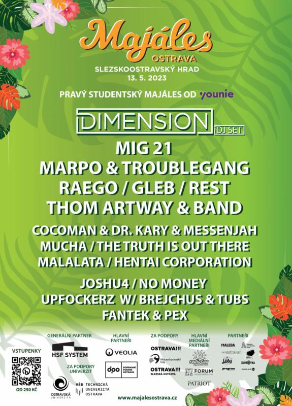 V roce 2023 se studenti opět potkají na Slezskoostravském hradě, a to v sobotu, 13. května. Těšit se můžete na 3 scény, které nabídnou více jak 20 vystupujících. Tradičně jej bude celý měsíc předcházet spoustu aktivit, které pro Vás připraví studentská organizace Younie.