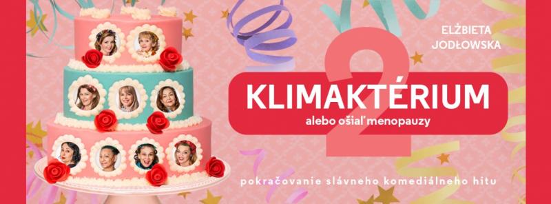 Po úspešných bratislavských premiérach komédie KLIMAKTÉRIUM 2 alebo ošiaľ menopauzy sa pokračovanie legendárneho divadelného hitu vydáva za divákmi po celom Slovensku. Príďte si užiť skvelú zábavu a ozdravnú terapiu smiechom. O ten sa v Klimaktériu postarajú fantastické herečky Gizka Oňová, Zuzana Tlučková, Zuzana Vačková, Katarína Brychtová, Dagmar Sanitrová, Jeanette Švoňavská, Ľudmila Lukačíková, Daniela Kuffelová a Jana Valocká.