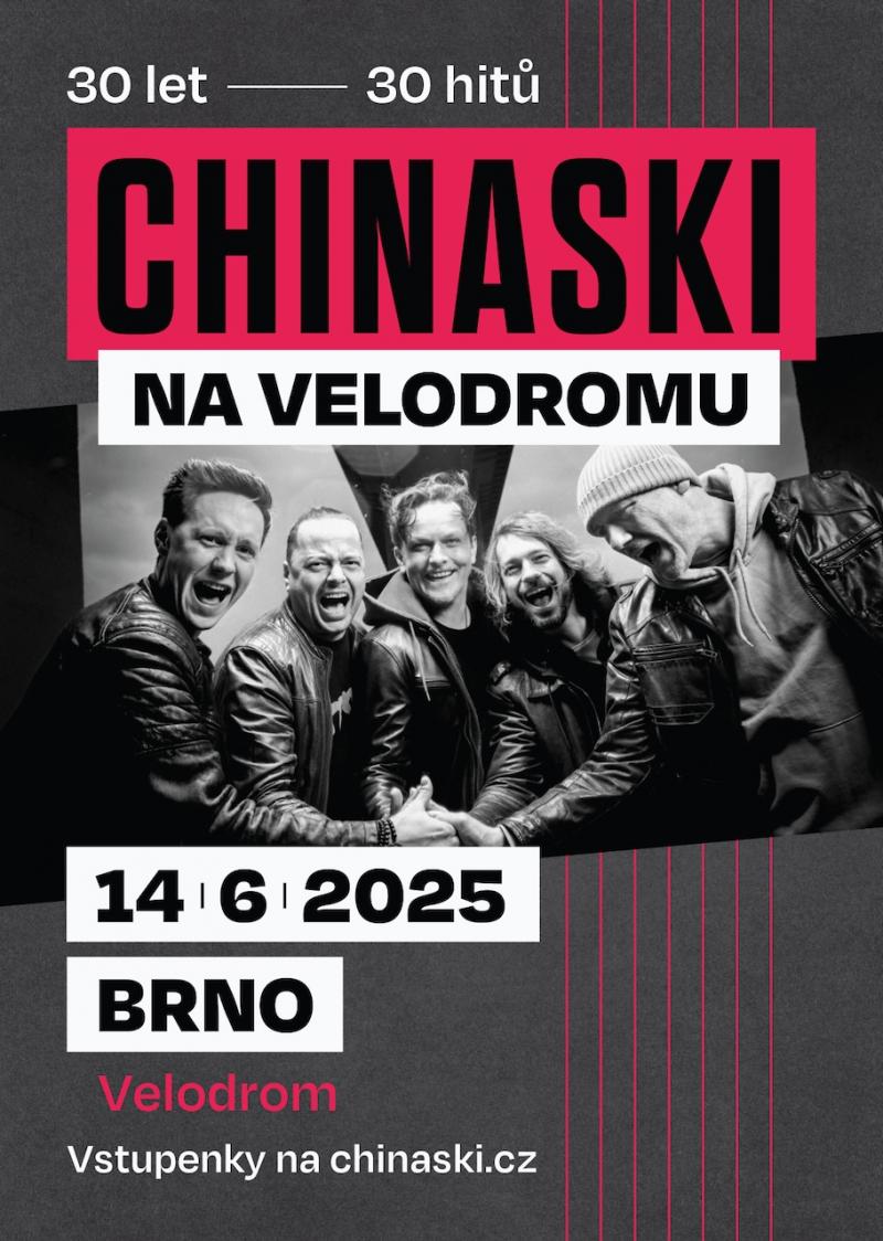 O týden později, v sobotu 14. června 2025, se Chinaski se svou show a dlouhým koncertem čítajícím nejméně 30 největších hitů z celé své historie představí v Brně na Velodromu. Na oba koncerty jsou k dispozici vstupenky na stání, sezení, VIP i rodinné se zvýhodněnou cenou za lístky pro děti. Fanoušci je mohou zakoupit na stránkách kapely www.chinaski.cz.