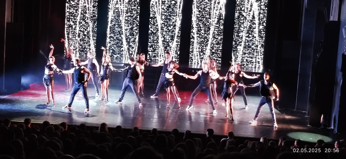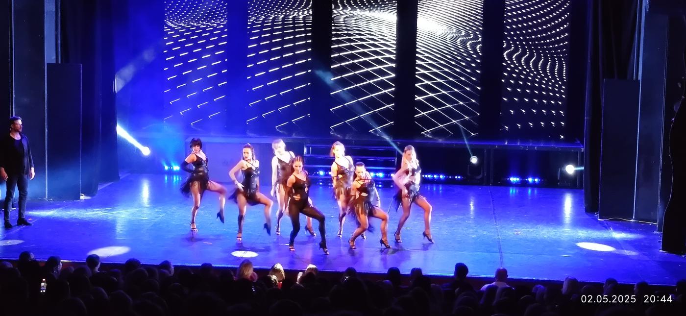 Latinský blok přinesl živost, radost i smyslnost. Samba s brazilskými kořeny, pomalá a zamilovaná rumba z Kuby i dynamická cha-cha a salsa byly ukázkou precizní techniky, strhující energie a naprostého souznění tanečních párů. Vzhledem k tomu, že šlo o tanečníky, kteří jsou několikanásobnými mistry v latinskoamerických a standardních tancích, byl každý pohyb perfektně propracovaný a vizuálně poutavý. Závěrečný moderní blok ukázal, jak se tanec mění s dobou. Tradiční tance jako Rumba, Tango, Jive, Cha-cha, Paso doble, Waltz a Valčík byly obohaceny o prvky stylů jako Heels a Contemporary. Do choreografií se promítla emancipace žen, které už nejsou jen vedeny mužem, ale samy určují směr. Scéna tak reflektovala moderní vztahy, jejich komplikace a výzvy současnosti. V tomto bloku se setkala klasika se současností. Tanečníci rozpoutali bouři emocí v choreografiích plných svobody, osobního výrazu, ale i bolesti a síly. Vrcholem večera byl stínový tanec – tichý, něžný a přitom neskutečně emočně silný. Diváci ani nedýchali.