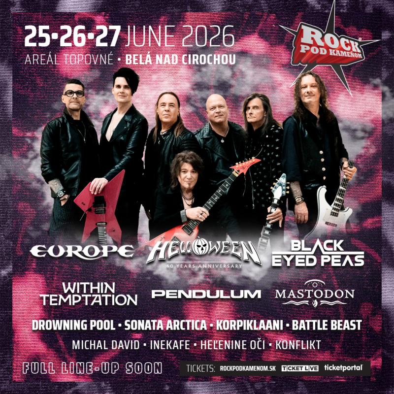 01.03.2026: Jeden z najväčších hudobných sviatkov na Slovensku, festival ROCK POD KAMEŇOM, odhaľuje ďalšie obrovské meno pre svoj 23. ročník, ktorý sa uskutoční 25. až 27. júna 2026 v areáli Topovné v Belej nad Cirochou. K už tak nekompromisne nabitému programu sa tentokrát pridávajú otcovia melodického power metalu, legendárna nemecká formácia HELLOWEEN. Už dnes je zrejmé, že ročník 2026 bude stáť na dokonalej kombinácii veľkých rockových legiend, globálnych hviezd a domácich stálic, ktoré dokážu vytvoriť jedinečnú atmosféru, akú fanúšikovia od tohto podujatia očakávajú.