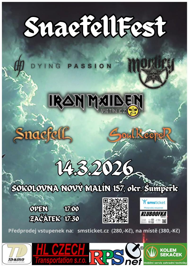 Kapela Snaefell uvádí svůj historicky první multižánrový metalový festival Snaefellfest vol. 1, který proběhne 14. března 2026 v Sokolovně v Novém Malíně u Šumperka. Fanoušci tvrdé muziky se mohou těšit na večer plný energie, emocí a pestrých metalových odnoží. Na pódiu se představí pět tuzemských kapel, které společně vytvoří intenzivní hudební atmosféru, kde si každý najde to své.